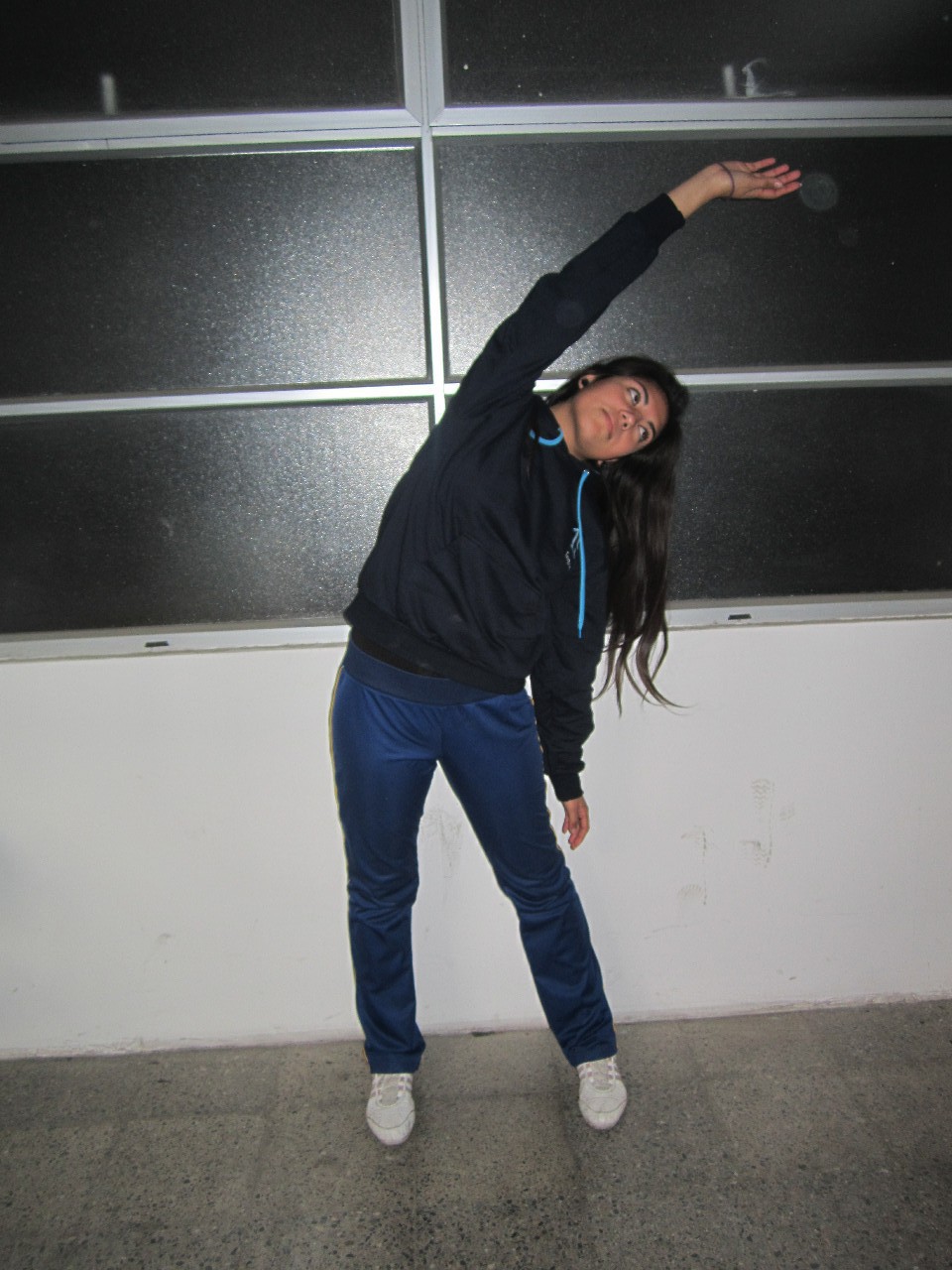 - Con las manos estiradas flexiona el tronco sobre el lado izquierdo del cuerpo, manteniendote en esa posicion.