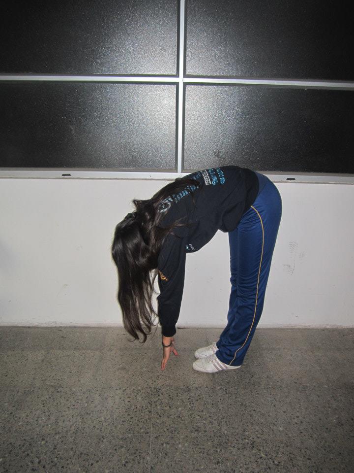 - Partimos de una posicion ergida, luego sin flexionar las rodillas, intentamos tocar el suelo con la punta de nuestros dedos y mantener.