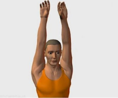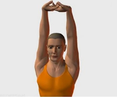 - Con las manos entrelazadas, estirar los brazos hacia arriba y mantener laposición 20 segundos.